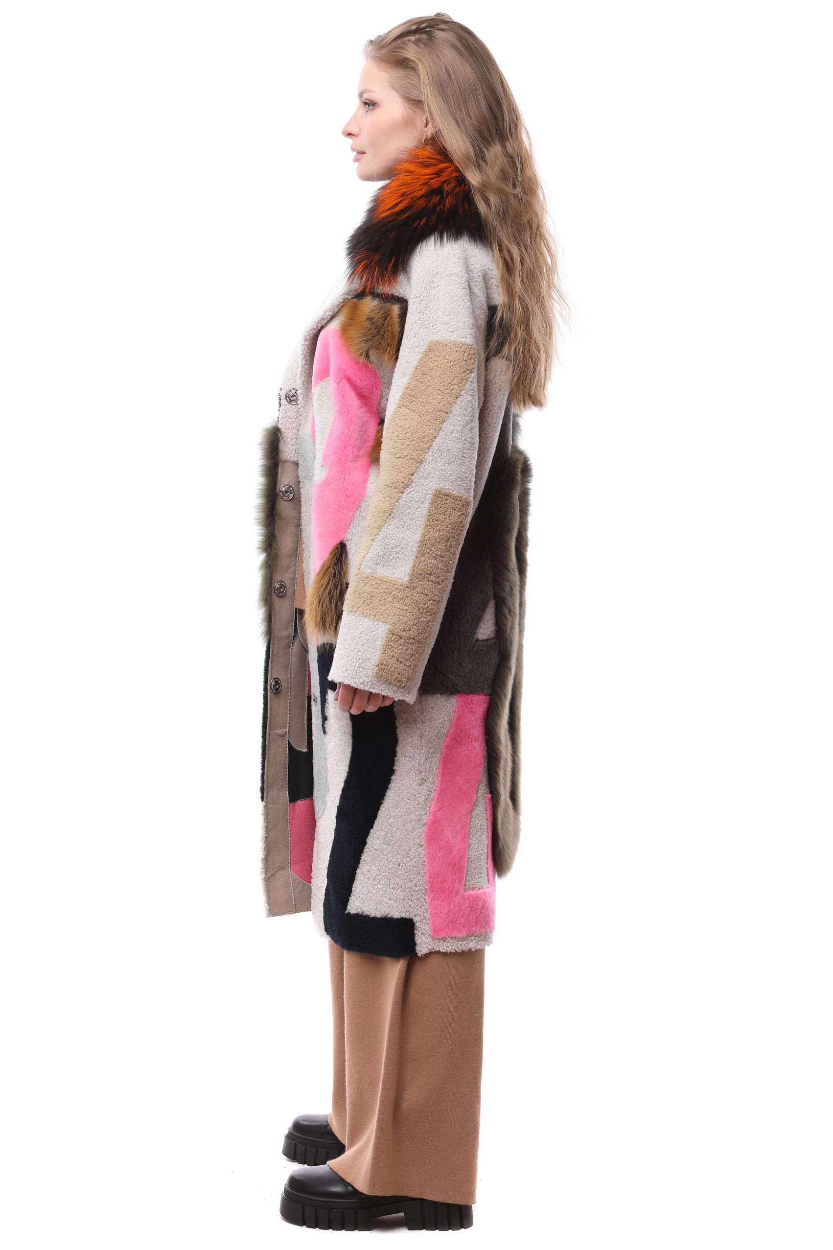 Полупальто нагольное женское BIANCA 10051 натуральный мех-овчина, отделка-мех лисы крашенная